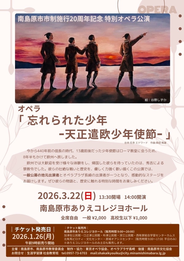 2026.01.20 南島原市市制施行20周年記念 特別公演 オペラ「忘れられた少年」のチラシをアップしました